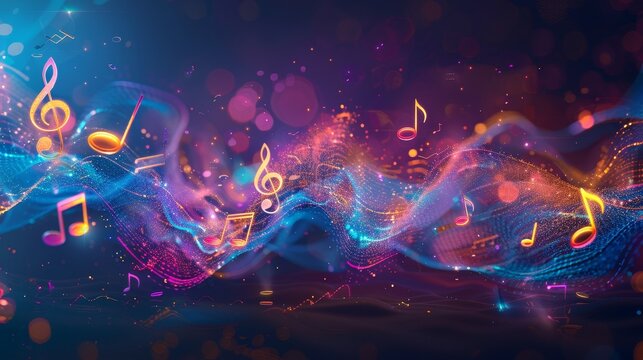 modern and abstract multicolor music background with fluid structure and clef, generative ai