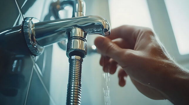 Plumber fixing a showerhead in a modern bathroom. Highlighting plumbing fixtures and bathroom upgrades