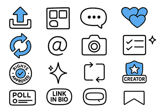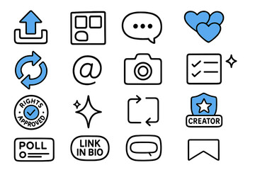 Flat vector icons of digital content creation: camera, video recorder, microphone, editing software, storyboard, graphics tablet, color palette, upload icon.