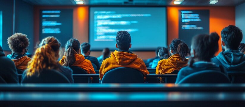 Students engaged in learning with mathematical symbols highlighting education