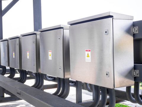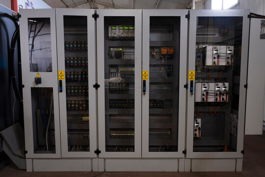 Factory Electric control panel enclosure for power and distribution electricity. Uninterrupted, electrical voltage.