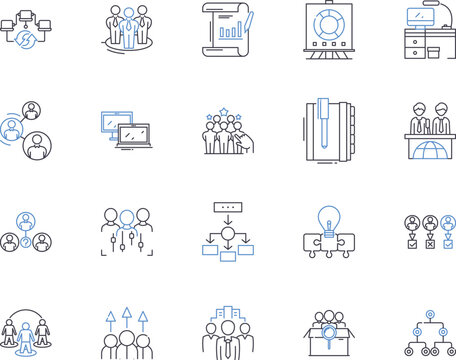 Corporate meetup outline icons collection. Conference, Gatherings, Forum, Networking, Retreat, Social, Meeting vector and illustration concept set. Mentoring, Summit, Exchange linear signs