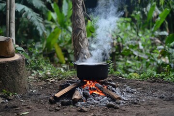Kawaii Stick Figure Chef Demonstrating Parboiling Process Illustration in Six Stages on White Background