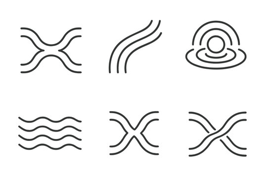 Convergent Liquid Harmony. Line vector icons of convergent liquid harmony: balanced water curves, uniting stream lines,