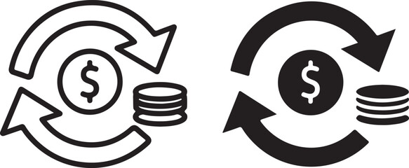 Vector art of money exchange icon, featuring a dollar sign encircled by arrows, symbolizing currency conversion and financial transactions, representing the concept of exchanging money outline icon on