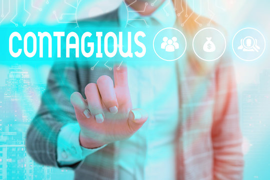 Word writing text Contagious. Business photo showcasing transmissible by direct or indirect contact with someone infected