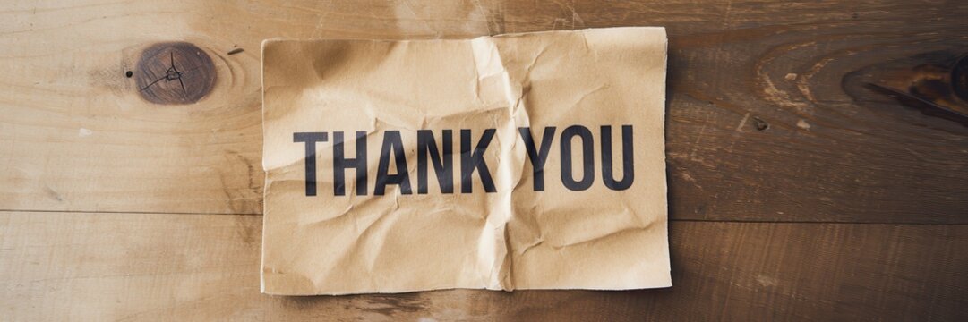 A heartfelt Thank You note on crumpled paper, conveying gratitude and appreciation