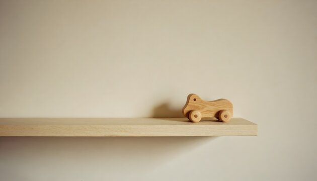 A close-up shot of a vintage wooden table or shelf in an empty interior design setting conveys a sense of nostalgia and simplicity