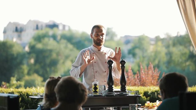 Show Kitchen. The cook prepares Carpaccio for the guests of the restaurant