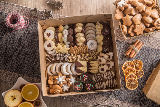 European Bakery Style Cookies Variety Flavors. Selective focus.