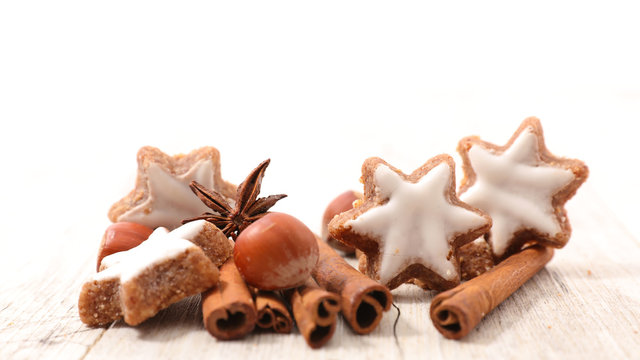 Homemade gingerbread shapes. Gingerbreads cookies, delicious christmas toy biscuits candy for xmas holiday new year food, ginger cookie sweet snowflake neoteric vector illustration