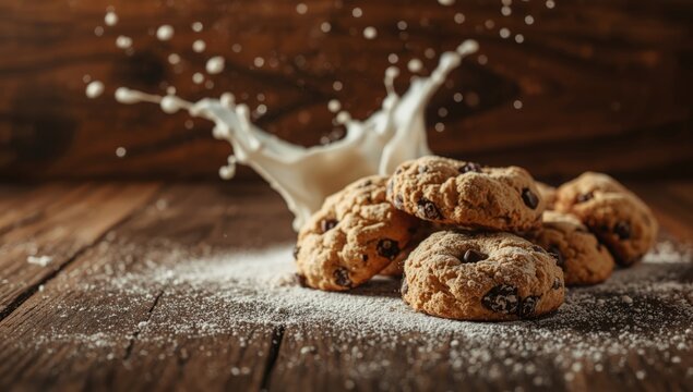 Biscuits cookies with chocolate and milk, serving as a dessert option with rich ingredients