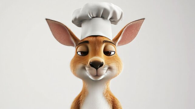 Kangaroo cartoon in a chef's hat, white background, cooking theme, cute and creative