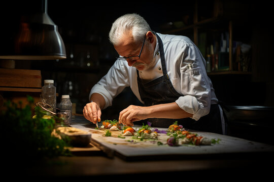 A Master Chef Meticulously Crafts an Exquisite Meal, Infusing the Kitchen with Seductive Aromas