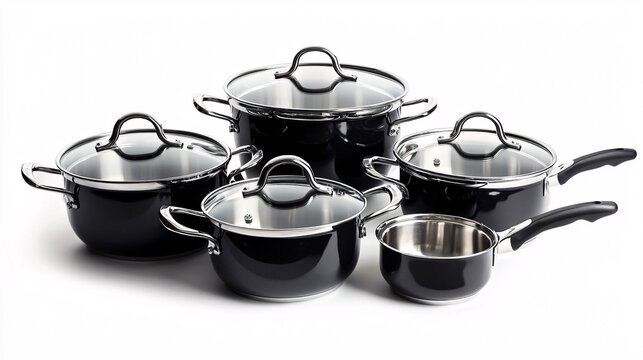 A sleek, non-toxic cookware collection showcased against a pristine backdrop, highlighting safe culinary choices for health-minded cooks and families.
