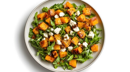 Fresh arugula and roasted butternut squash salad with feta and black pepper