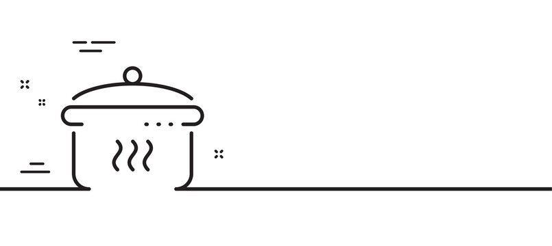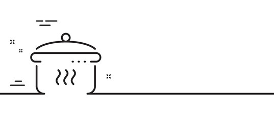 Boiling pan line icon. Cooking sign. Food preparation symbol. Minimal line illustration background. Boiling pan line icon pattern banner. White web template concept. Vector