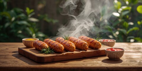 Chicken sausage links grilled to a golden brown, ideal for summer cookouts