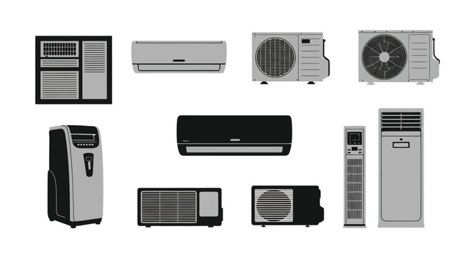 Collection of various air conditioner units for home and commercial use vector