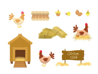 Chicken coop and hays on white background. Chicken Coop Chicks Elements Illustration