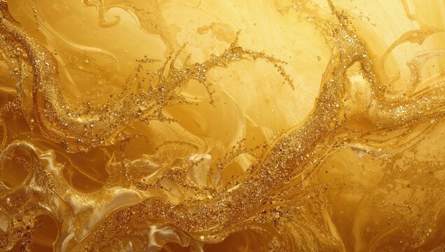 A radiant, golden surface embellished with shimmering glitter, producing an impression of elegance and refinement.