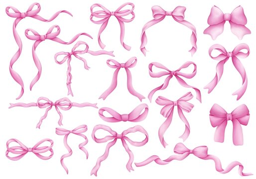 Cute hand-drawn ribbon bows in romantic coquette style. Ideal for digital scrapbooking or fashion prints.