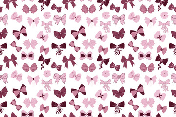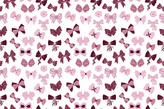 Pink satin bows, overlapping and layered, forming a delicate, repeating pattern, pretty, retro