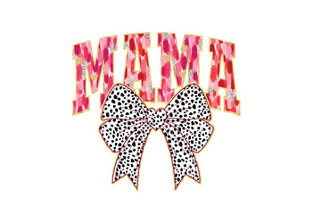 Mama Pink Leopard Print Typography with Polka Dot Coquette Bow for Sublimation Design