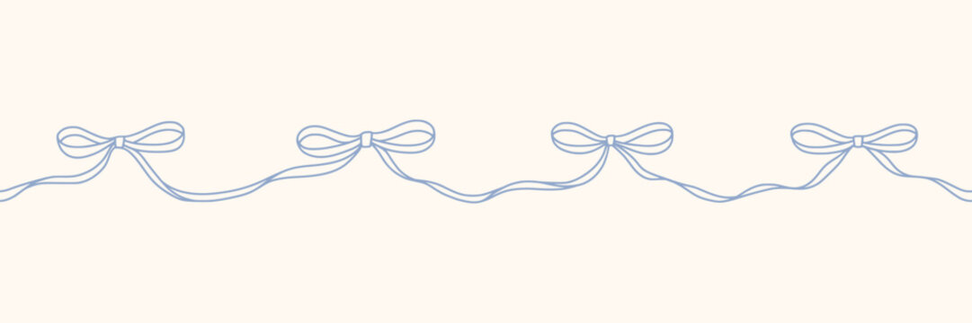 Hand drawn coquette bow seamless border with a charming whimsical cottage core design. Soft blue, pastel, and nostalgic, perfect for textiles, wrapping paper, and romantic vintage-inspired decor.