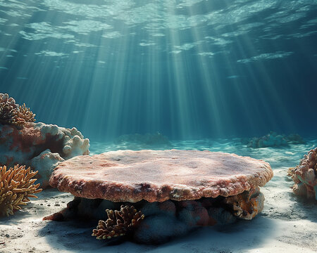 podium underwater themed coral reef background