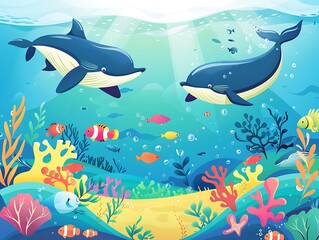 Vibrant underwater scene of a coral reef with colorful corals and fish. Ideal for marine life themes, ocean conservation, and nature backgrounds