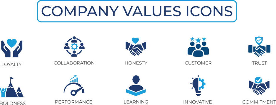 Company values icon set.