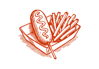 Homemade corn dogs with fries, ketchup and mustard