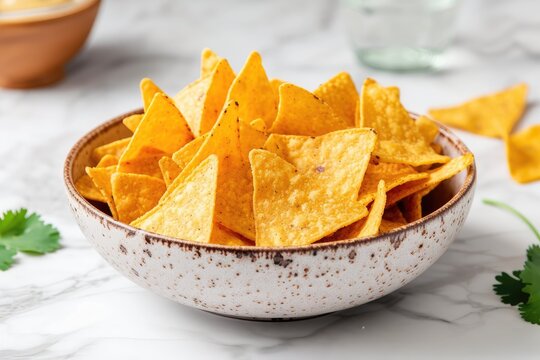 Marble table mockup with corn tortilla chips bowl