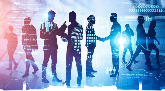Interconnected global technology network concept with digital data business intelligence analytics and corporate consulting services Infographic design showcasing digital transformation
