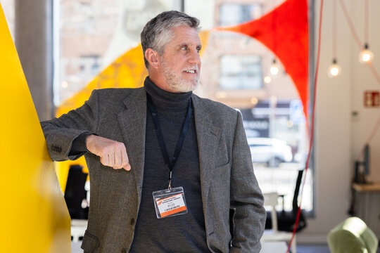 A professional holds a blue card, symbolizing identification or certification in a healthcare or corporate environment.