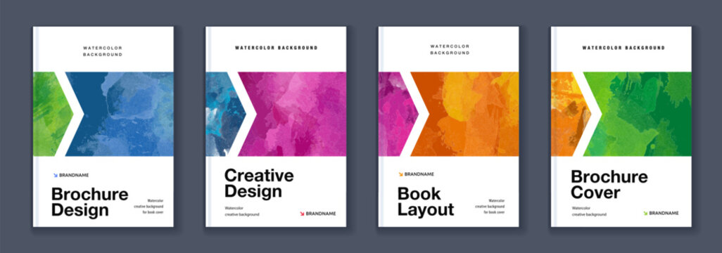 Watercolor booklet brochure colourful abstract cover template bundle set with white background