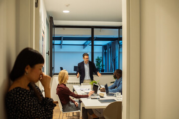 Business people, hr meeting and employee conflict for complaint, punishment and resolution in office. Corporate team, human resources and performance review for help and advice with administration