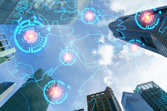 Modern corporate solutions overlooking urban skyline