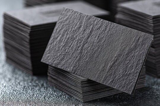 Elegant black business cards stacked neatly on a textured surface ready for distribution at a networking event
