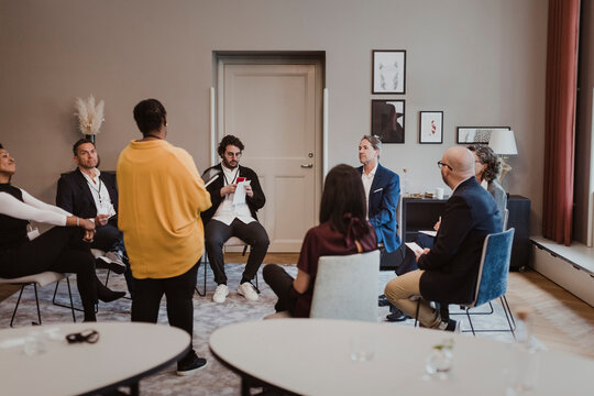 Business people discussing during training session in corporate office