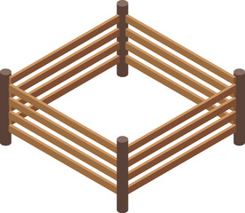 Detailed isometric graphic of a wooden fence arranged in a pen shape, suitable for farm layouts