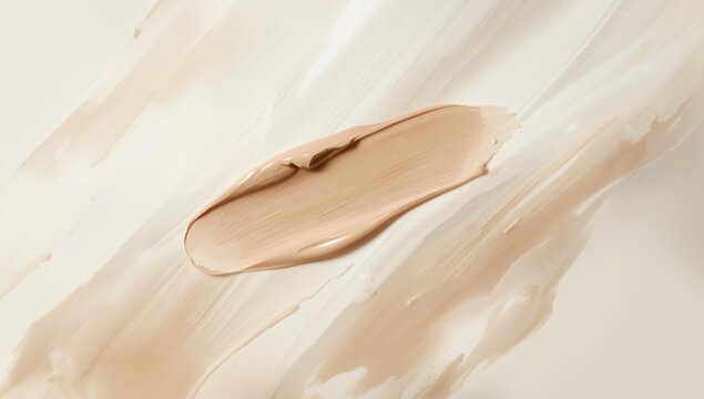 Concealer, corrector brush stroke. Nude color correcting cream smudge smear swatch sample. Makeup foundation creamy texture