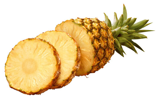composição com abacaxi cortado em fatias isolado em fundo transparente