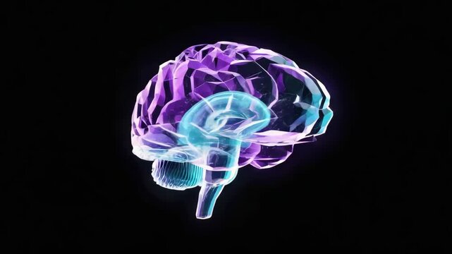 3D rendering of a human brain, its complex structure with emphasis on the cerebral cortex and lateralization. Useful for educational content related to neurology and cognitive function.