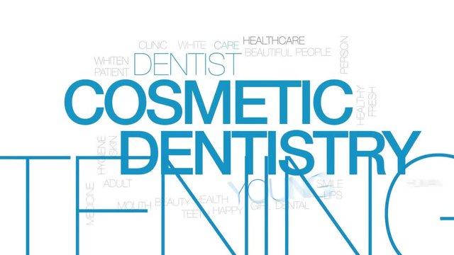 Cosmetic dentistry animated word cloud. Kinetic typography.