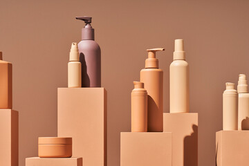 Beauty background with facial cosmetic products. Makeup, skin care concept.