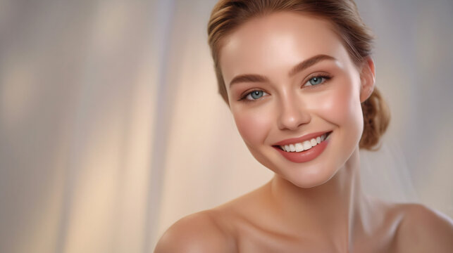 beautiful woman photographed in advertising style for cosmetic products and advertising, generative AI