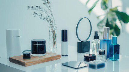 Showcasing beauty products with professional branding props in a minimalist flat lay setup for social media