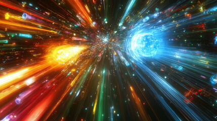 Abstract background featuring blue and purple neon glow on a black canvas Depiction of light speed in a cosmic setting suitable for events or celebrations